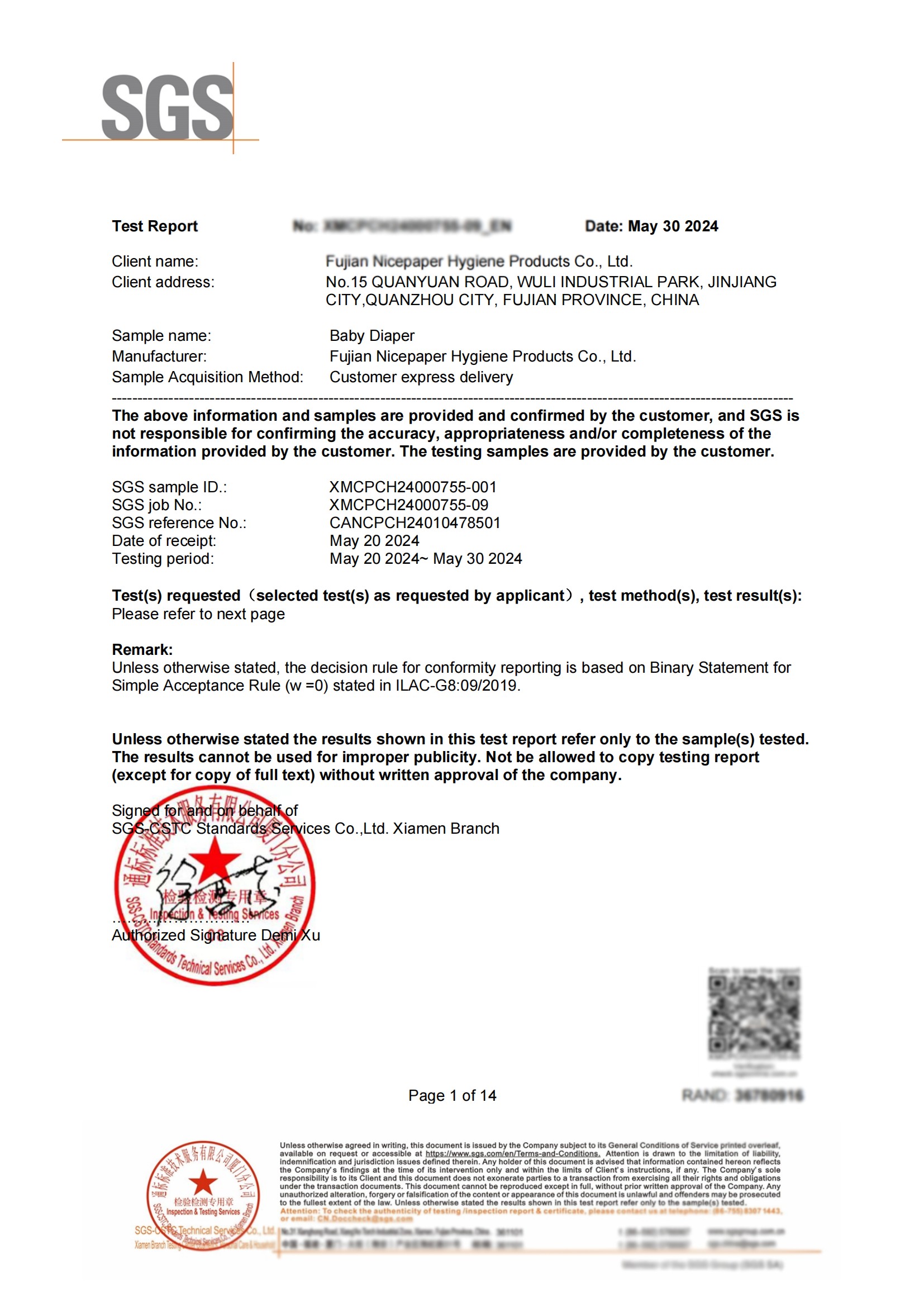 Fujian Nicepaper Hygiene Products Co., Ltd was originated in 1997, and officially established in year of 2016.We are a rapidly developing and professional hygiene products manufacturer integrating R&D. design, production, domestic and overseas sales Our products include: baby diaper, sanitary napkin, disposable pet/nursing pad, wet tissue and so on……